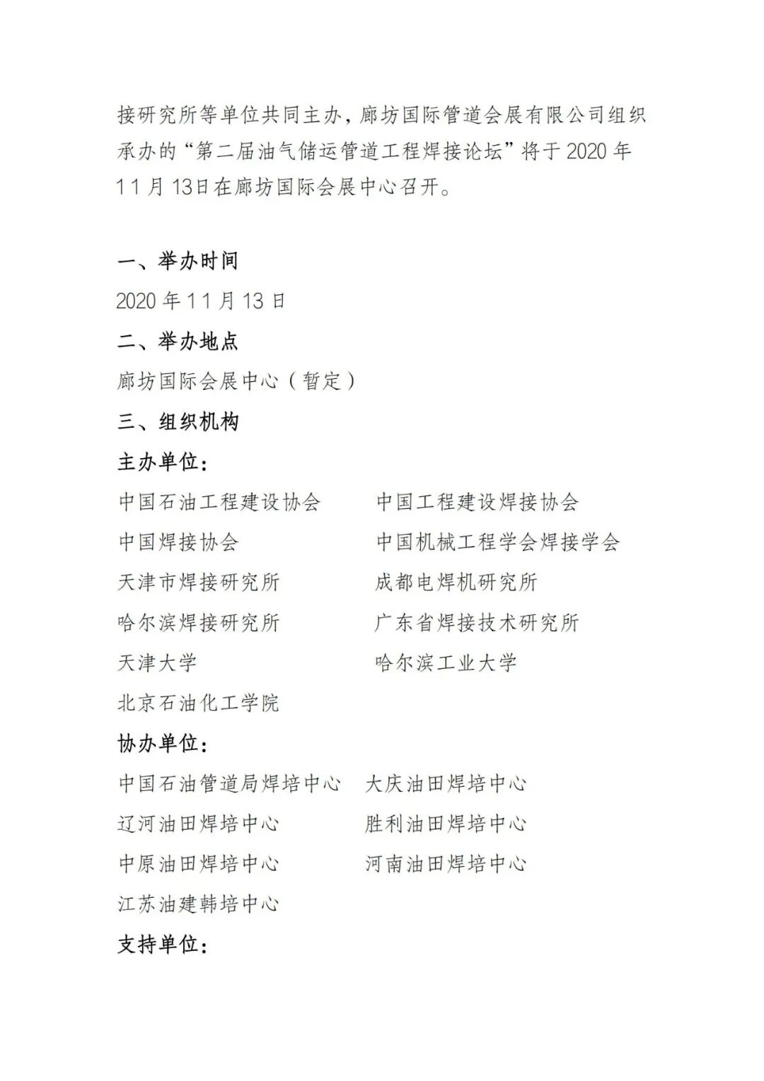 【焊接论坛】关于举办“第二届油气储运管道工程焊接论坛”的通知