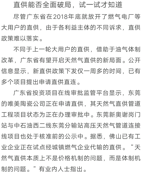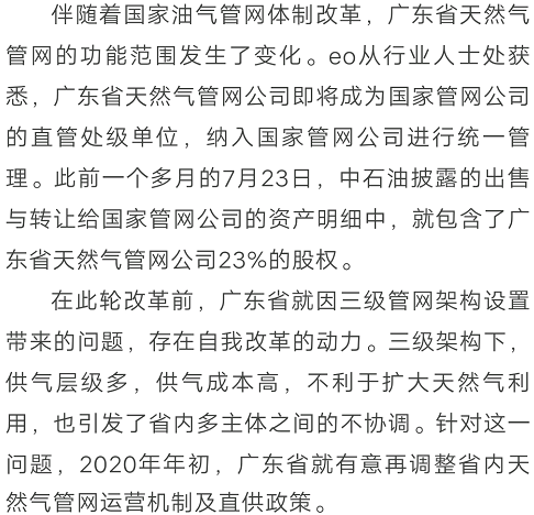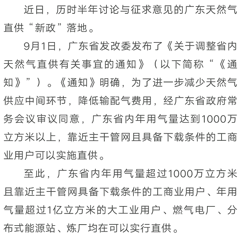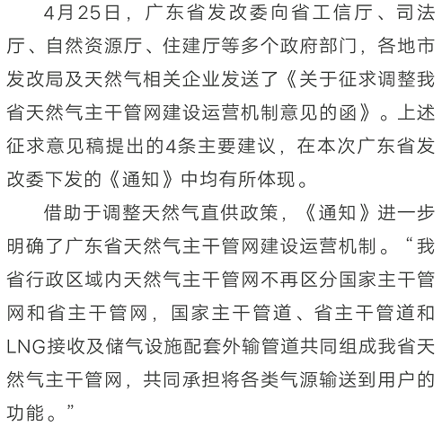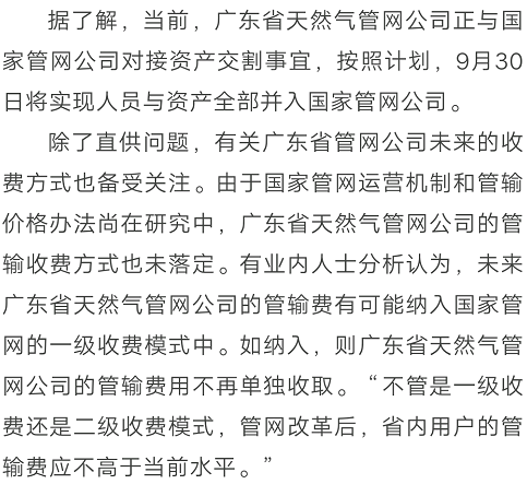 【关注】国家油气管网资产交割在即 广东扩大天然气直供范围