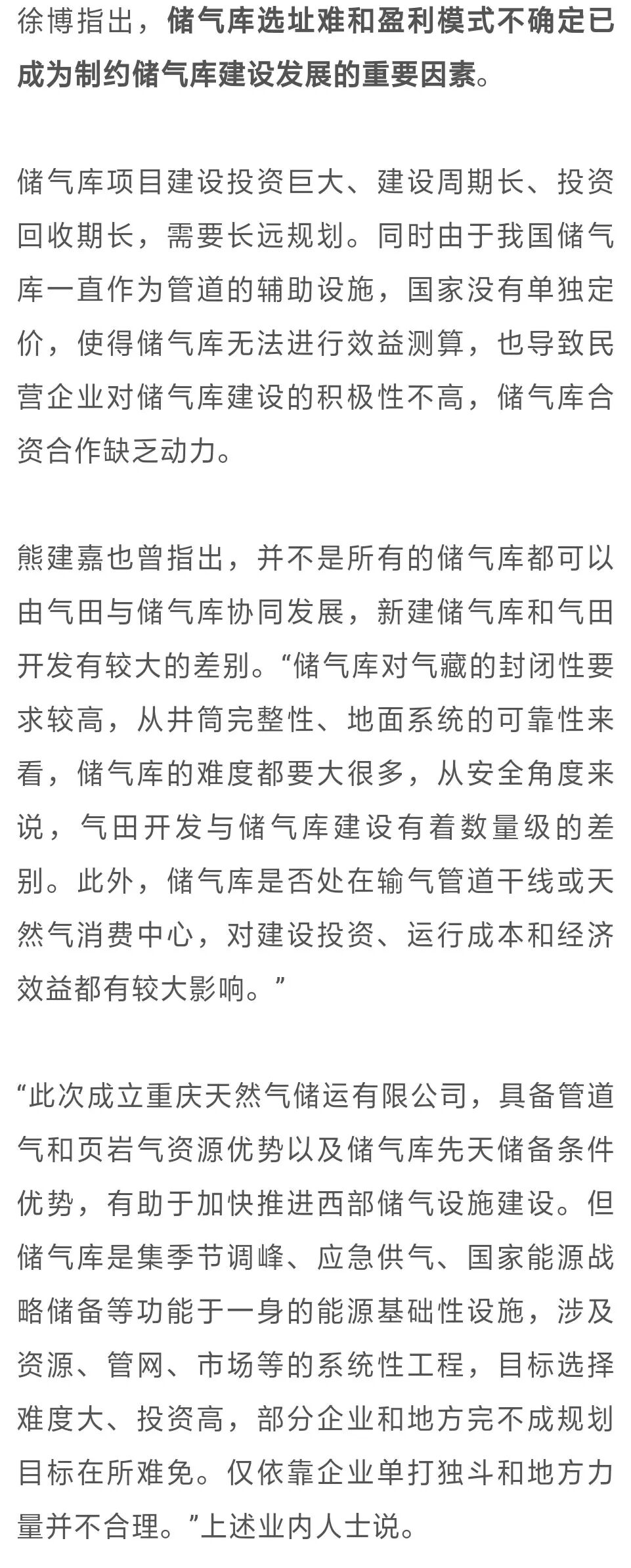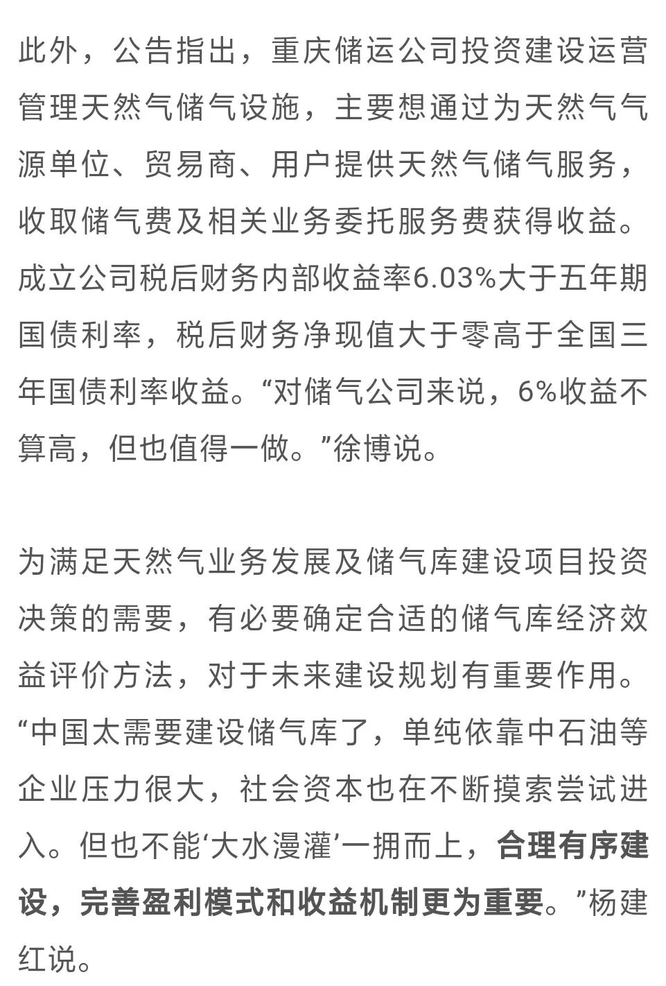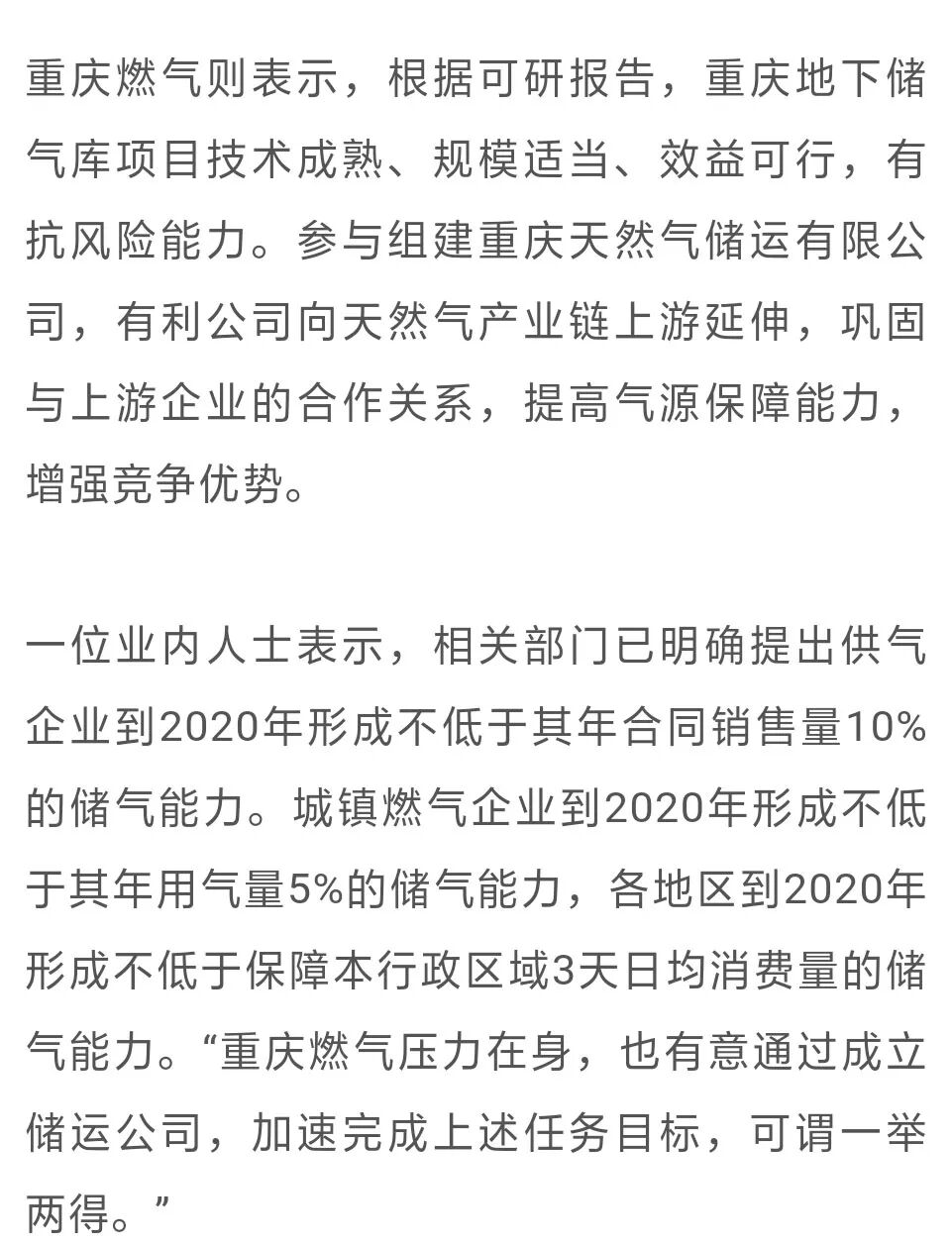 重庆燃气日前发布公告称,为改善重庆市储气设施不足、冬季供气保障能力较弱等难题,公司拟与中石油、北京燃气等企业共同组建“重庆天然气储运有限公司”,目标建成30亿立方米储气库,并首次以正式文件提及地下储气库财务测算收益率。