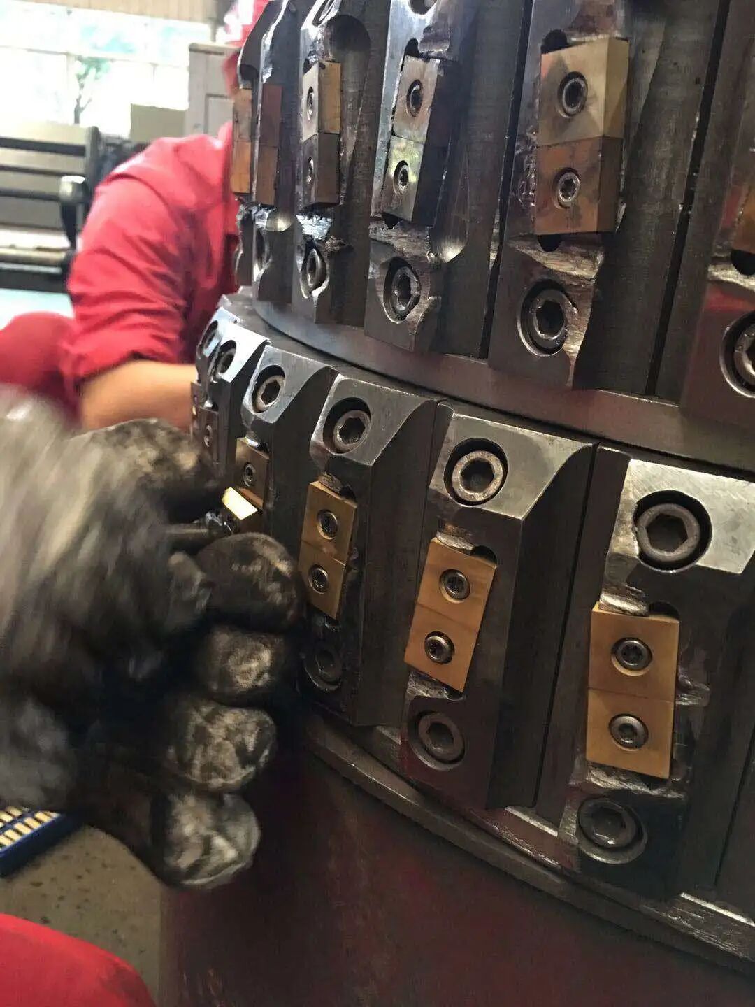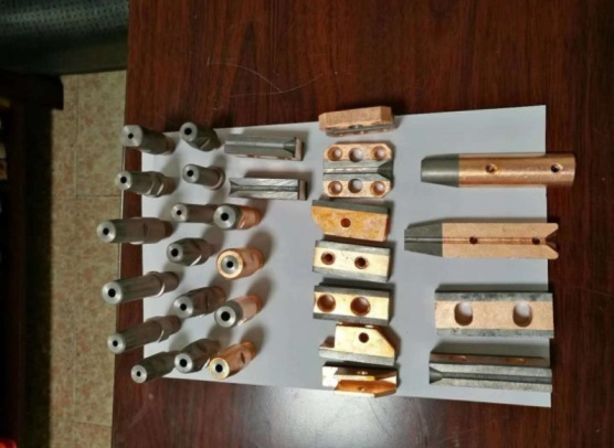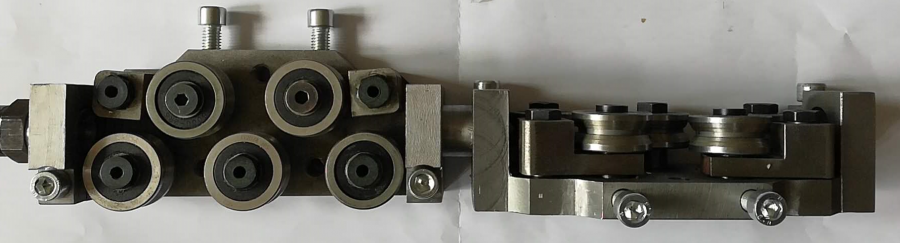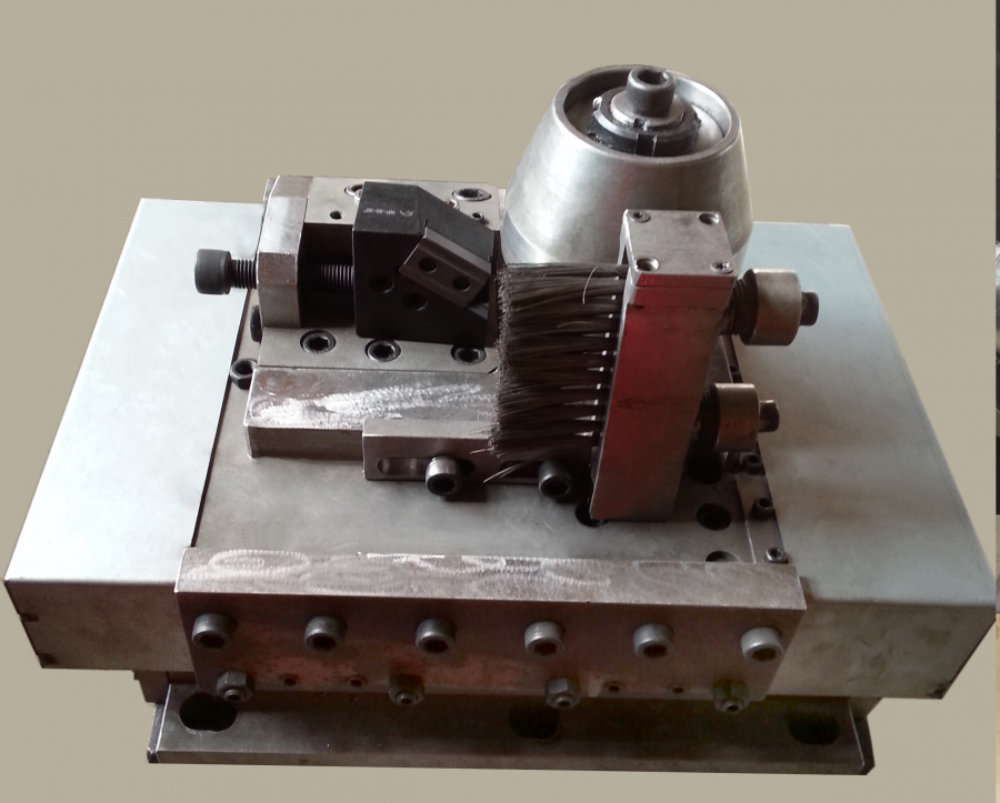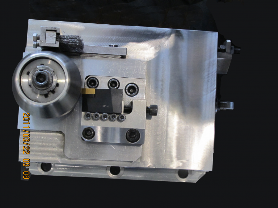 二、钢管管端加工专用刀具 我公司可提供倒棱机管端坡口加工完整的刀具系统,这些系统由刀盘、带有负载的弹簧滑动系统、仿形轮和一些用于调节的螺杆组成,标准化的刀片和刀杆均有库存。 系统的灵活性可确保各种倒角设计符合API或ASME等标准,也可采用符合客户要求的不同坡口形状需要。 1. 倒棱机刀架系列 我公司独创的刀具定尺断屑技术,可极大方便客户的现场应用。 (1)径向浮动外坡口刀架 编号:JWP-01 管径适应范围:φ406~φ2540mm; 钢管材质:Q235B~X100 最大壁厚:≤40mm; 管端椭圆度的适应范围:±18mm 技术特点:本刀架采用国际领先的径向浮动机构,具有极高的切削稳定性和加工精度,因此能得到高精度的管端加工尺寸和光洁的加工表面,并可实现静音切削,尤其适合高强度等级管线钢厚壁弯管和直缝焊管的加工。配合高精度的钝边刀架,钝边尺寸控制可达±0.3mm以内,刀杆定位上采用了三向锁紧装卡技术,可实现刀杆高精度重复定位与灵活调整。 本刀架系统具有定尺断屑功能,极大地提高了操作安全性。并设计有钢丝刷清扫装置,可有效清除钢管端部留铁屑,消除了坡口加工过程中常见的压坑、崩刀现象。 (2)内坡口浮动刀架 编号:JNP-01 管径适应范围:φ406~φ2540mm; 钢管材质:Q235B~X100 最大壁厚:≤40mm 管端椭圆度的适应范围:±18mm 技术特点: 管端内坡口浮动刀架为适应国内外管道自动化焊接和不同壁厚钢管对接过渡(弯管与直管对接)坡口需求而开发的产品,具有与产品JWP-01同样的加工优点。 管端内坡口加工表面质量稳定、精度高,刀杆易更换、调节方便。通过与外坡口刀架产品JWP-01和钝边刀架产品DB-01组合,可完成不同坡口形貌的加工。 (3)HFW生产线倒棱机用浮动刀架 产品编号:JWP-02 适应管径范围:φ168~φ711mm; 钢管材质:Q235B~X70 最大壁厚:≤16mm 管端椭圆度的适应范围:±18mm 技术特点:本刀架系统为适应国内外中小口径HFW焊管特点而开发的产品,具有结构紧凑的优点,可实现中小型口径HFW焊管管端坡口的快速、高精度加工。 (4)摆动浮动仿形外坡口刀架 编号:BWP-01 适应管径范围:φ168~φ2540mm; 钢管材质:Q235B~X100 最大壁厚:≤50mm 管端椭圆度的适应范围:±8mm 技术特点: 本刀架系统针对国内传统的摆动浮动刀架结构进行了多处改进,尤其是对刀架结构的整体刚性提高改进,解决了国内此类型坡口刀架转轴固定螺钉易断难题。 本刀架系统设计有浮动钢丝刷清扫装置,可有效清除钢管内残留铁屑,解决了坡口加工过程中常见的压坑、崩刀现象。 2.刀杆系列 三、埋弧焊焊接工装及 焊接耗材材料系列 近年来,我公司利用自身在材料研发的技术优势,开发了可调式焊枪系统,钨铜复合耐高温导电嘴、矫直轮,新型焊丝放线架等新产品。 1、可调式焊枪系统 2、正交五辊焊丝矫直轮 原始的精绕焊丝是有弯度的,如果弯度过大,容易造成焊缝焊偏。 对于没有进行退火处理的高强焊丝,进行焊丝矫直是十分有必要,可采用两对正交五辊矫直机进行矫直再使用,可减少导电嘴的磨损,增加导电嘴寿命,减小焊偏缺陷。 4、桶装焊丝用固定式放线架工装 近几年,部分焊丝厂为迎合国内外埋弧焊管企业在高钢级,高标准管线不停车对头的需求,开发了500kg, 甚至1000kg装的大卷桶装焊丝。 立式焊丝放线架即为满足公司未来大卷焊丝应用技术发展而开发的新型工装产品。 500kg 桶装焊丝 1吨桶装立式焊丝放线架